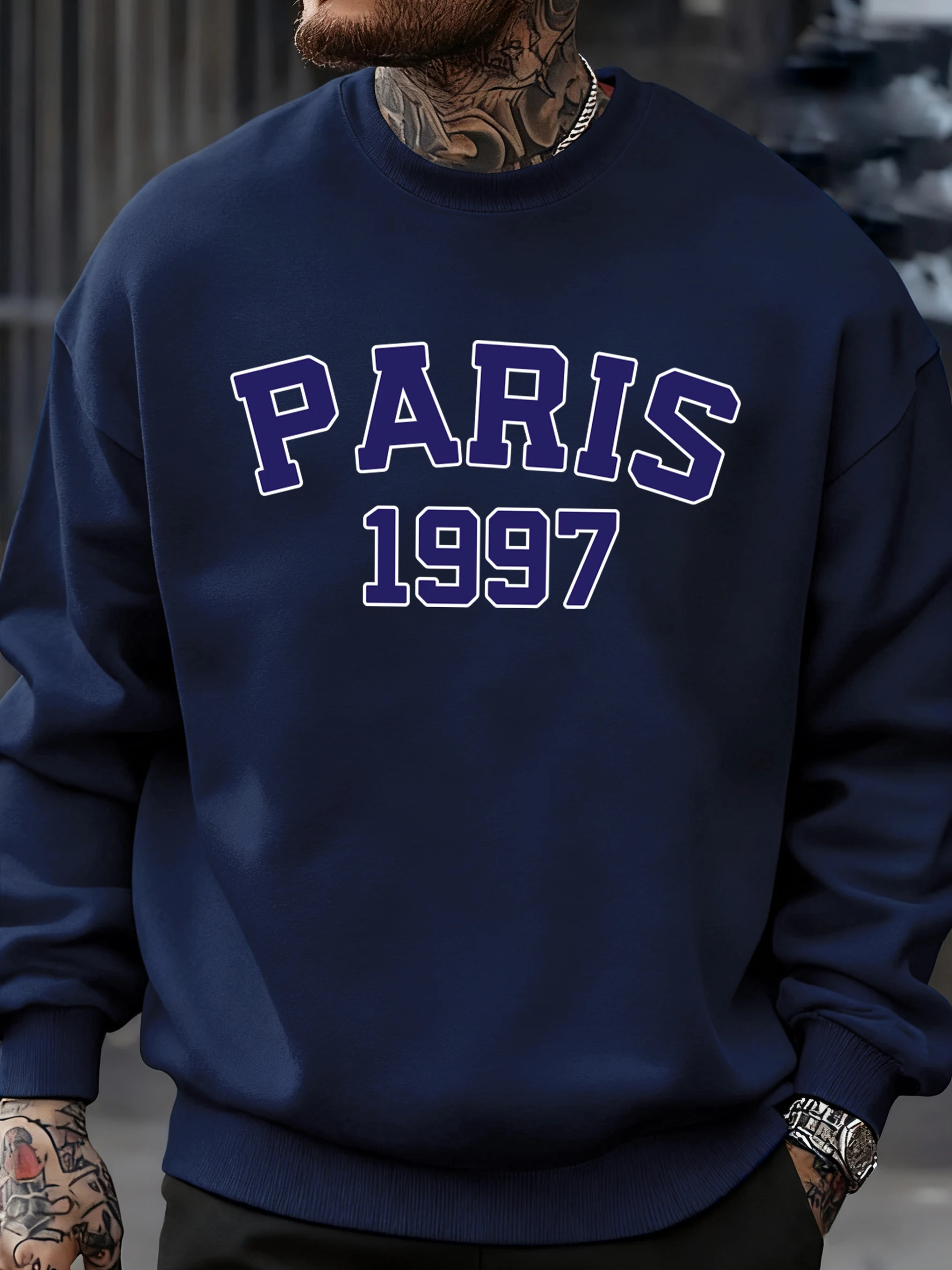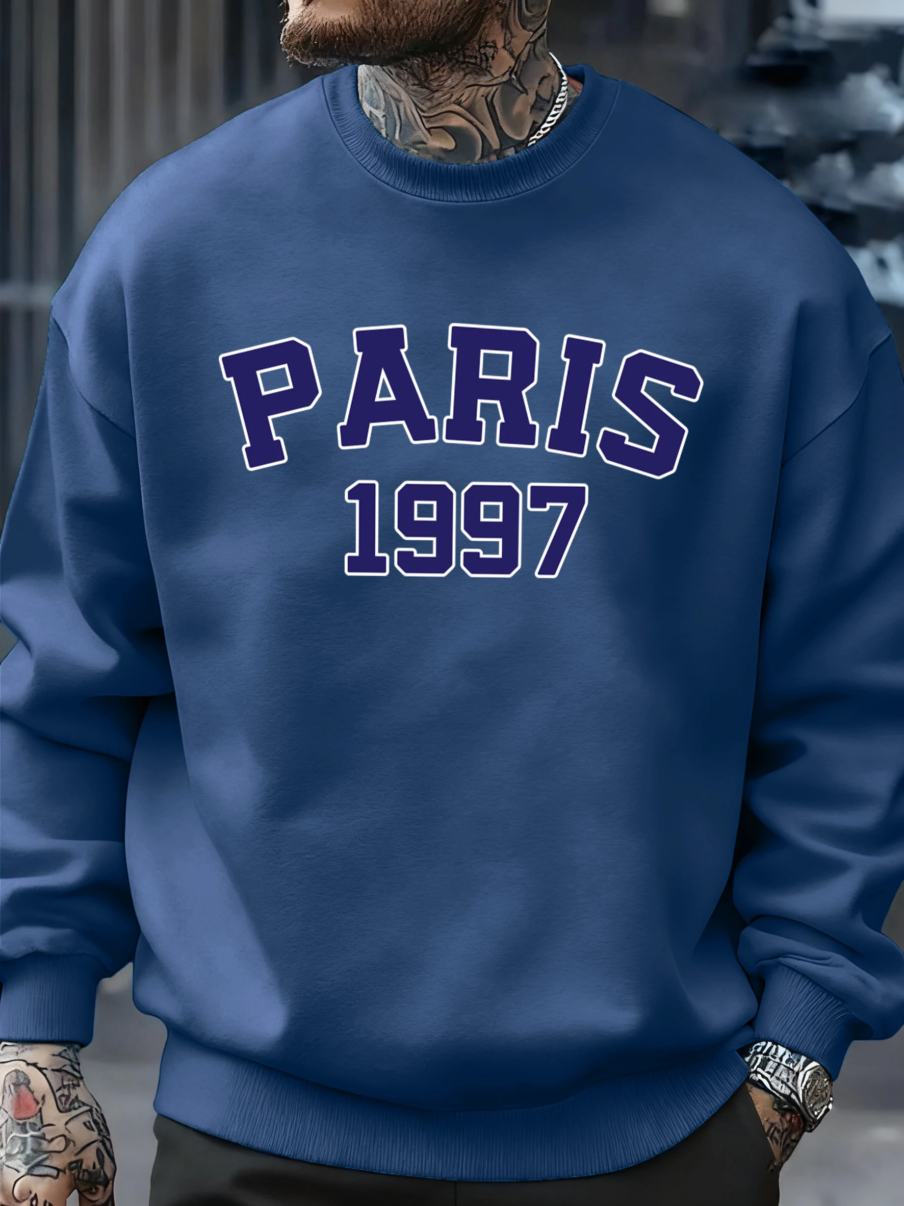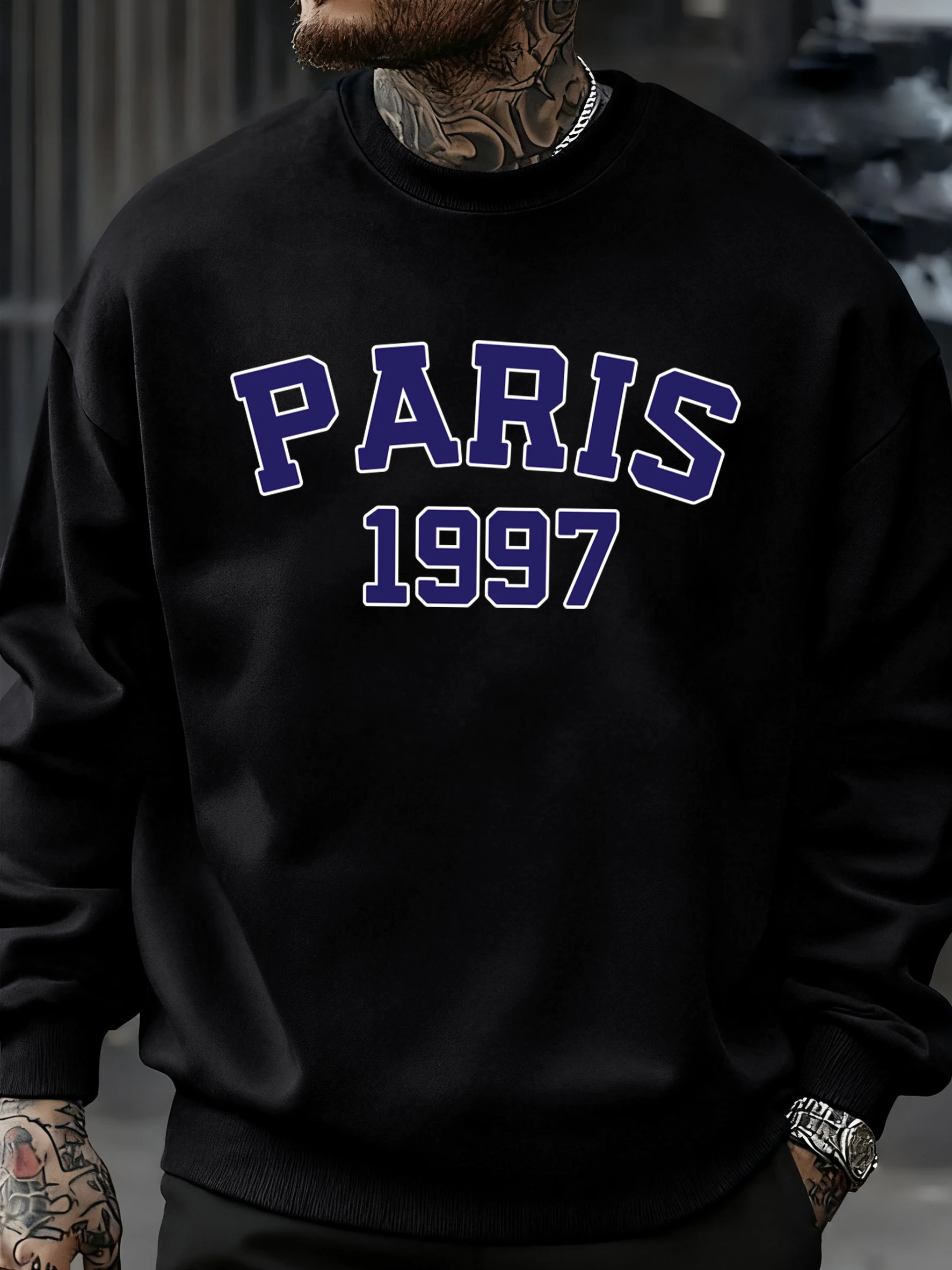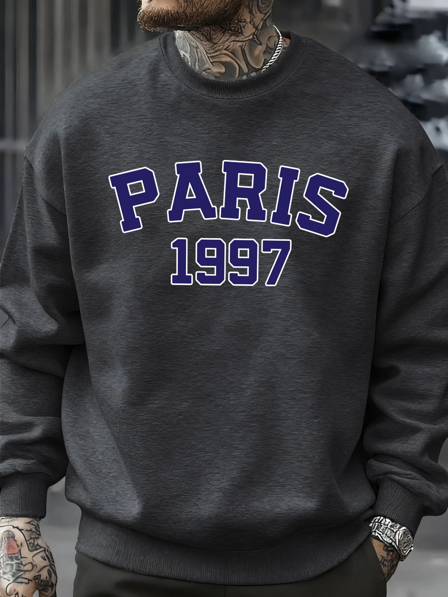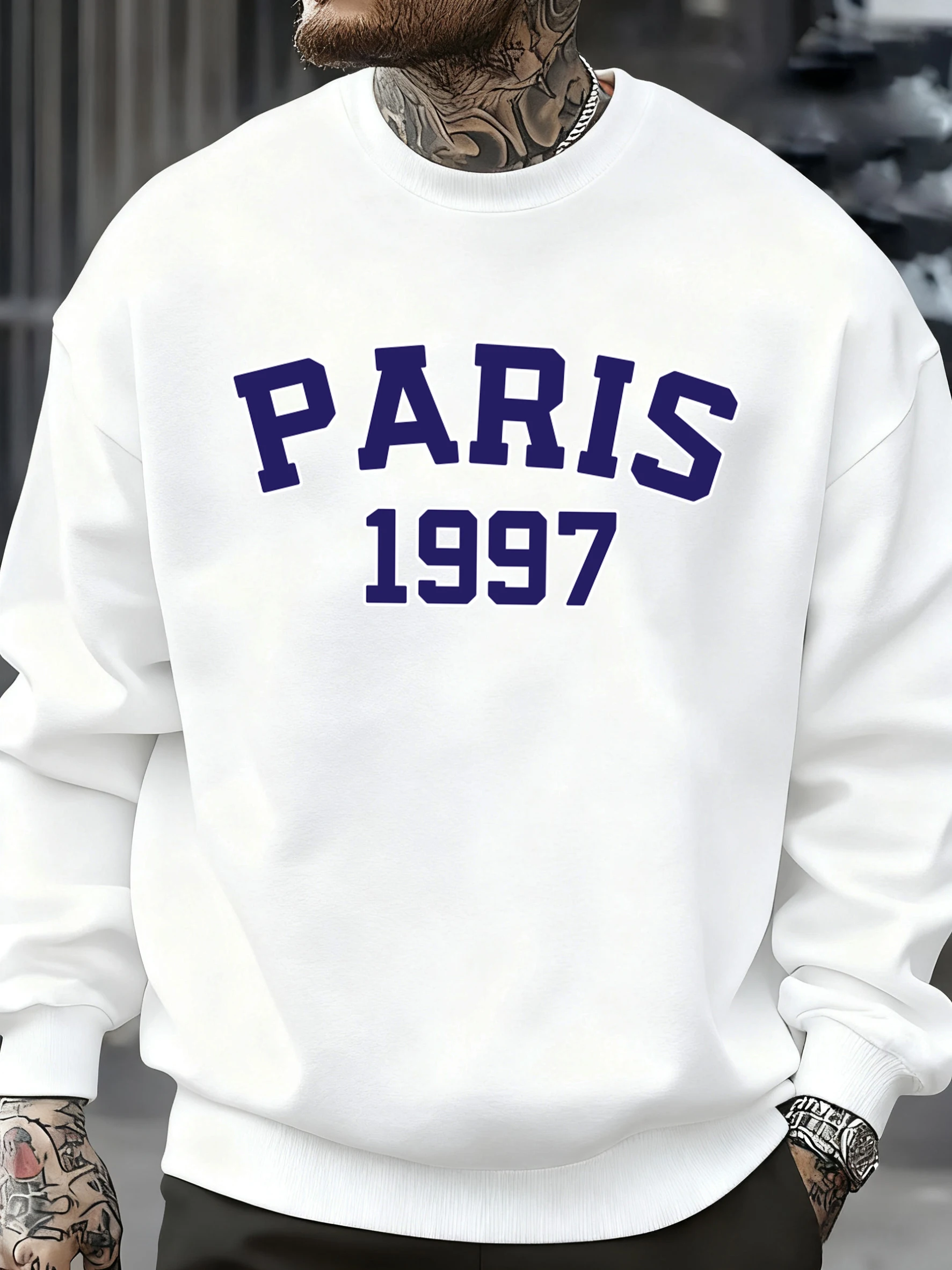 Paris 1997 Street City Letter Printed Pullover Men Autumn Warm Sweatshirt Loose Fleece O-Neck Clothing Soft Casual Streetwear