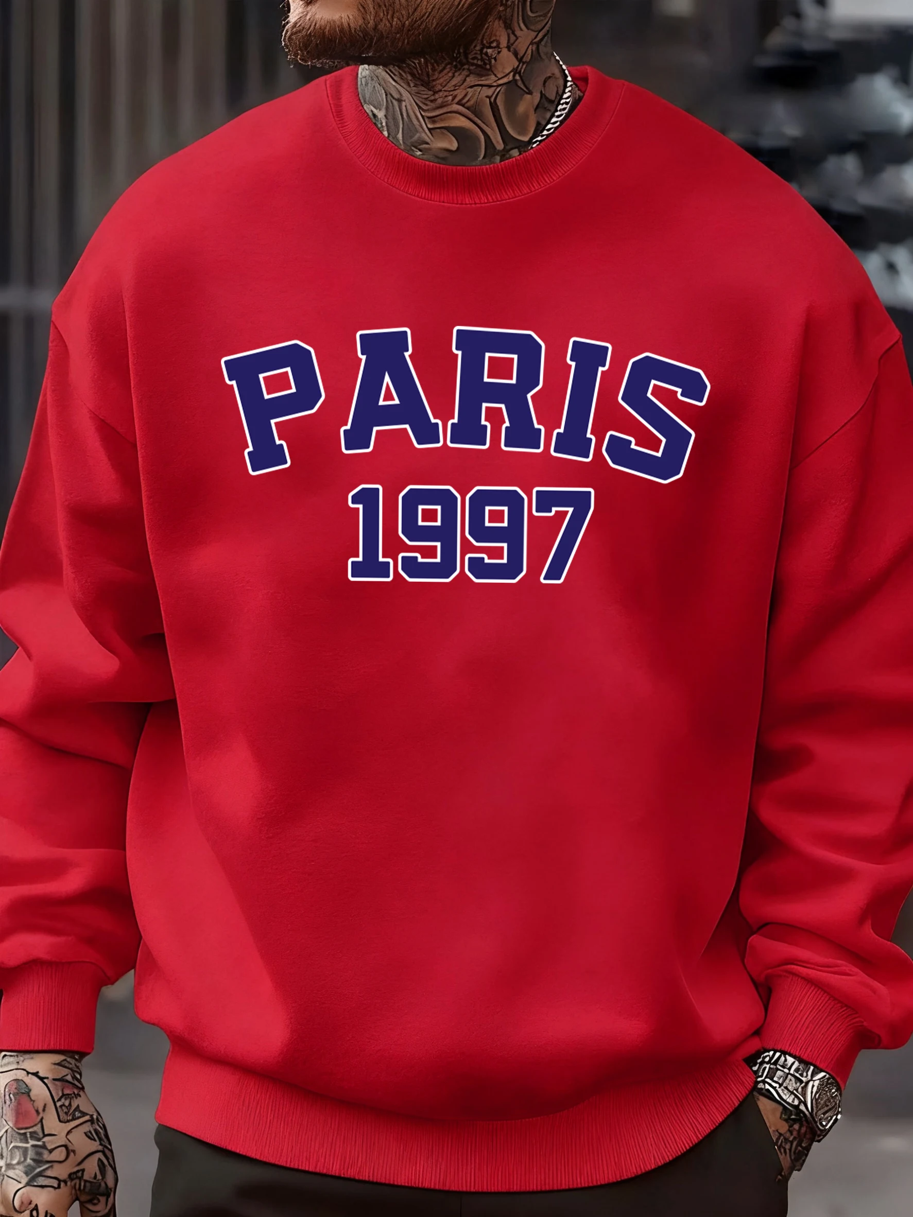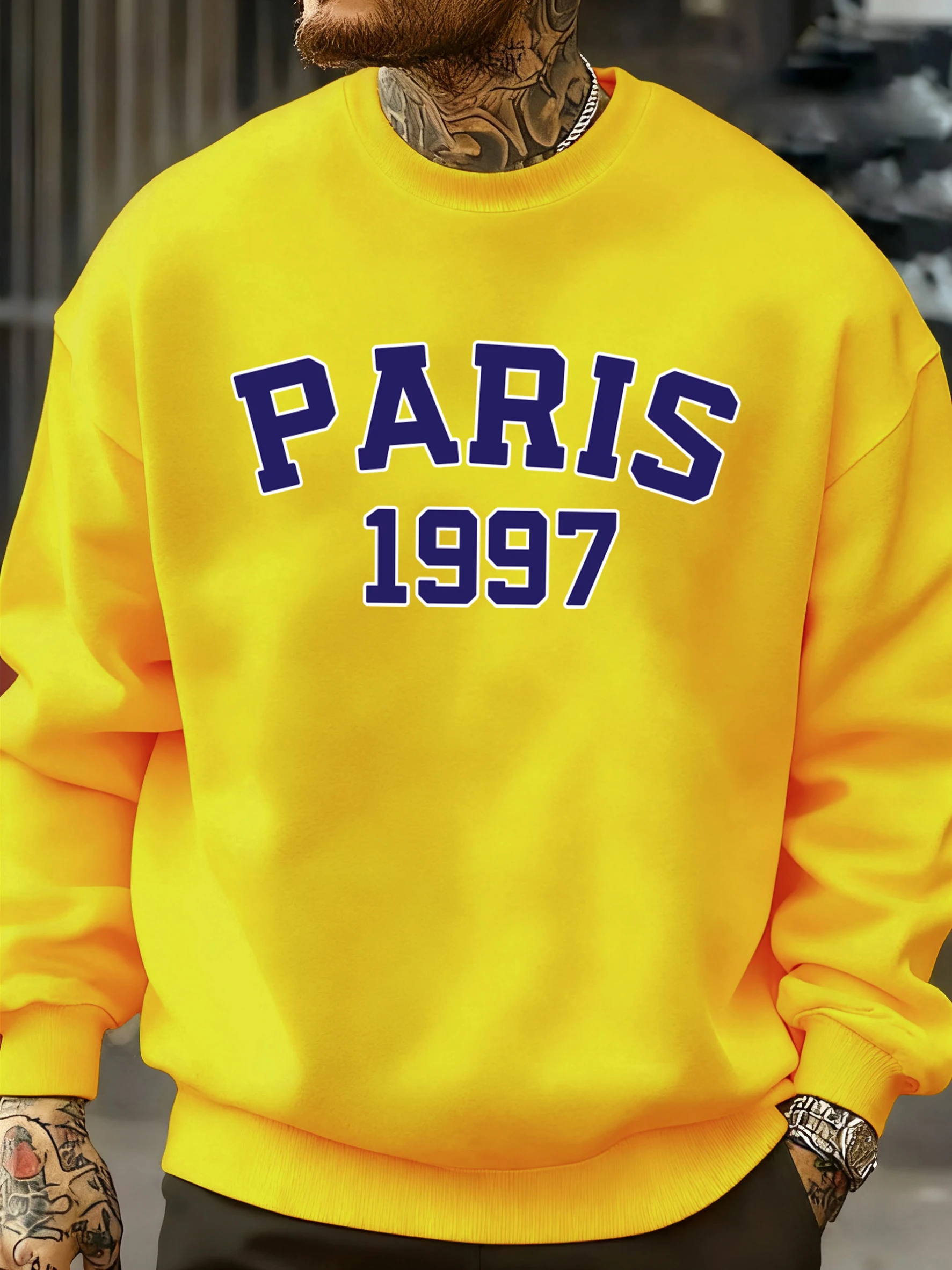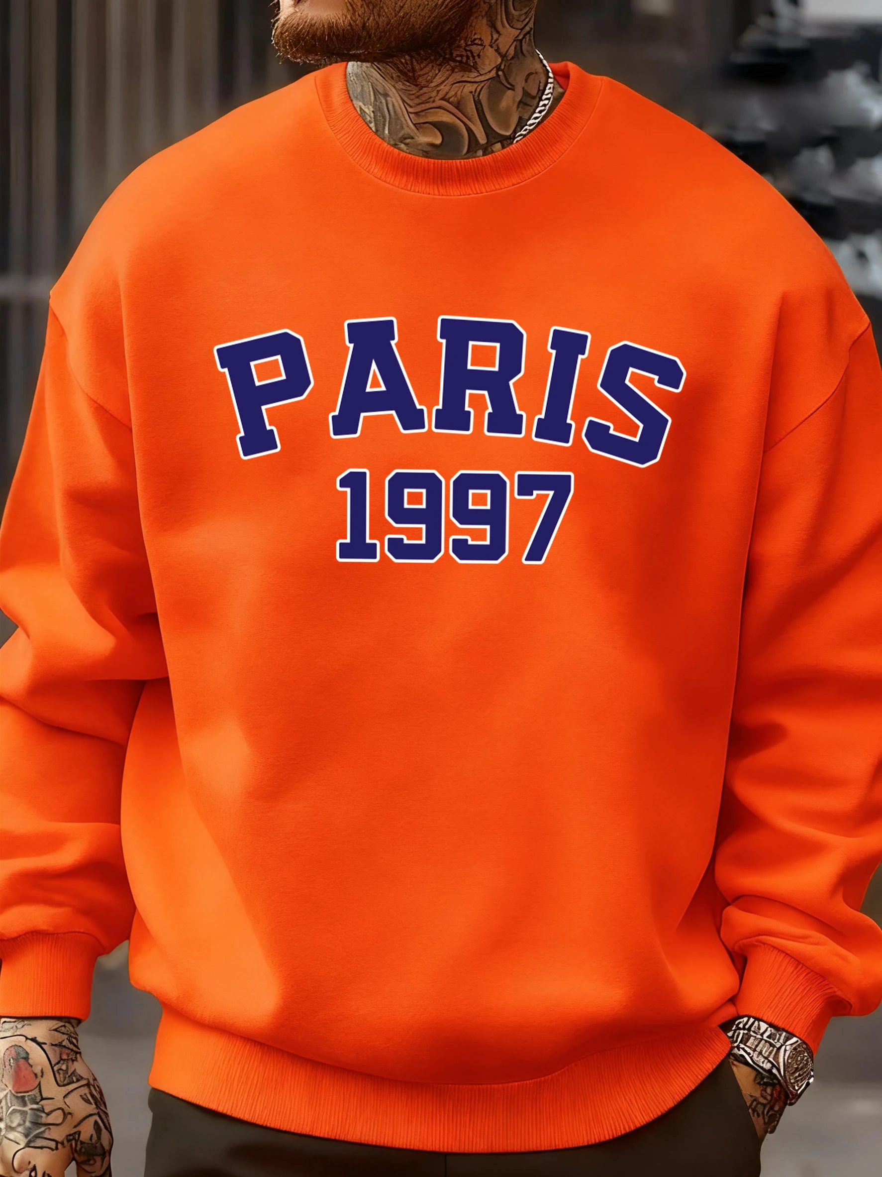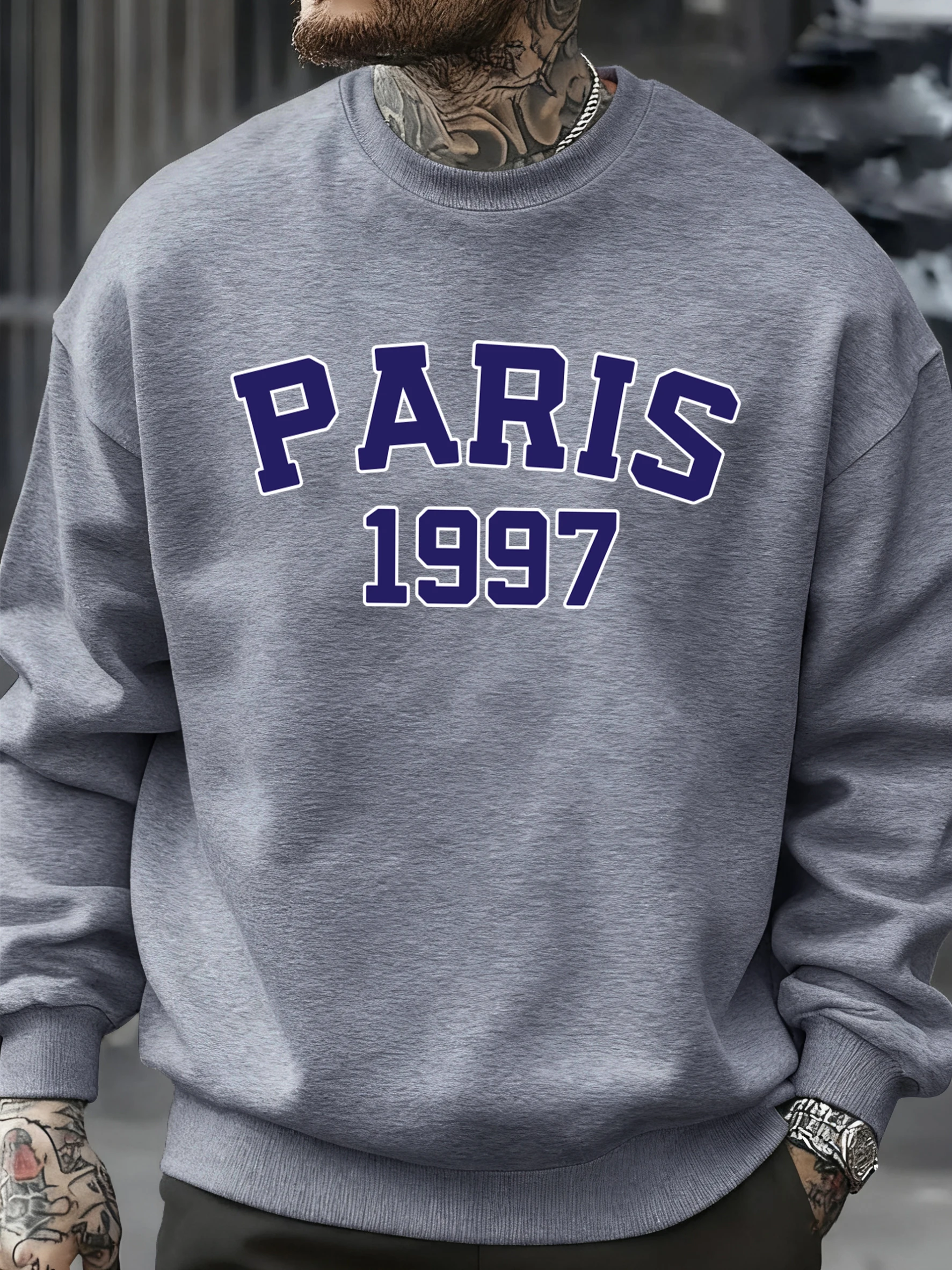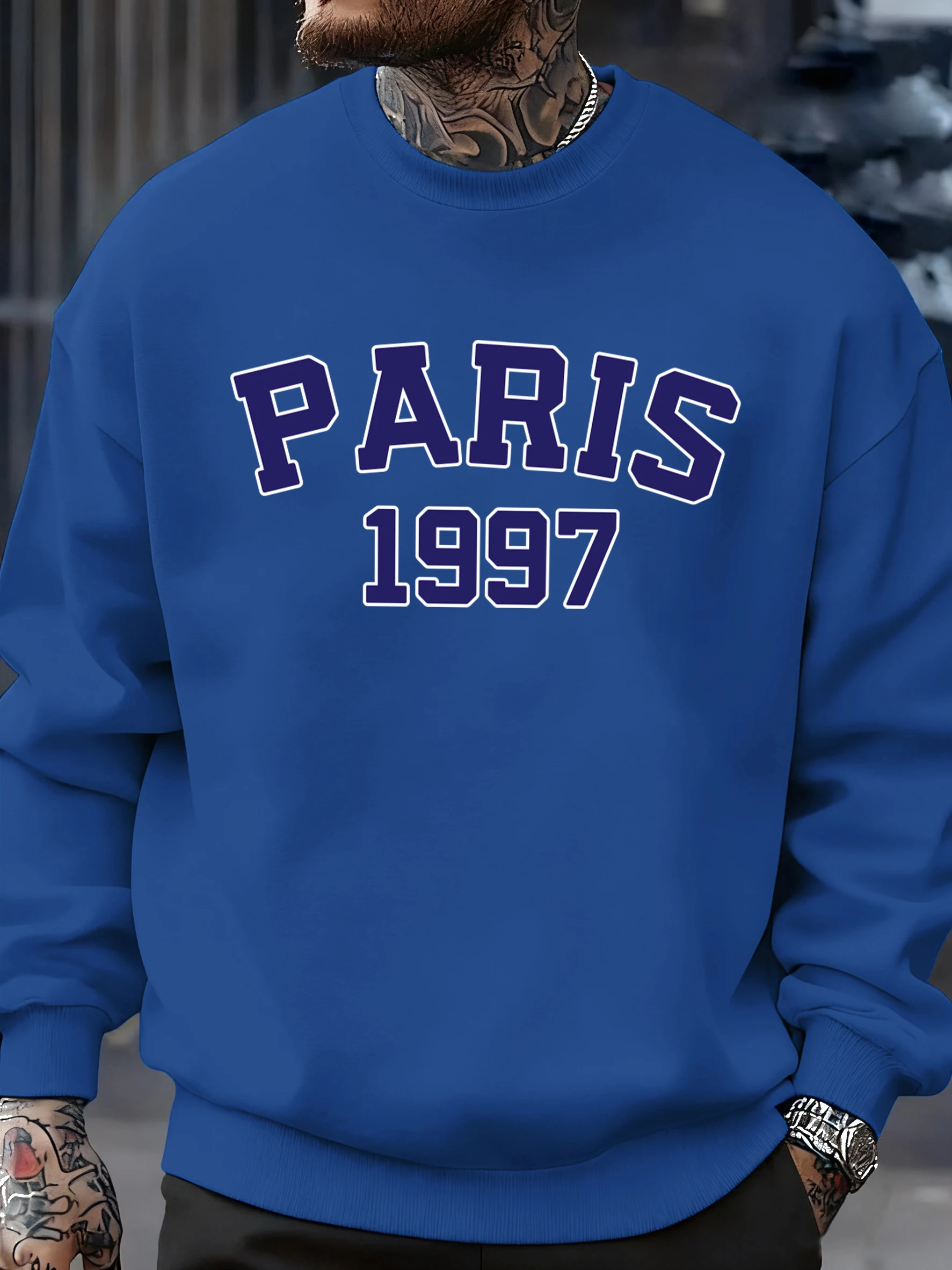 Paris 1997 Street City Letter Printed Pullover Men Autumn Warm Sweatshirt Loose Fleece O-Neck Clothing Soft Casual Streetwear